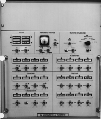 This example shows the IU Measuring and Tracking console at position BE1 (Area B, Row E, 1st station). At left, the console as it appeared in late 1966, during the checkout of AS-500F.