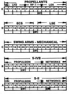 The Saturn V's guidance and flight computers could be loaded and tested from the panels on the left side of rows C and D.