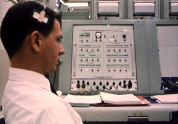 Console BE3: NASA engineer Jason Rudisill (Launch Instrumentation Systems Division) at the Q-Angle of Attack panel, Apollo 8 CDDT.